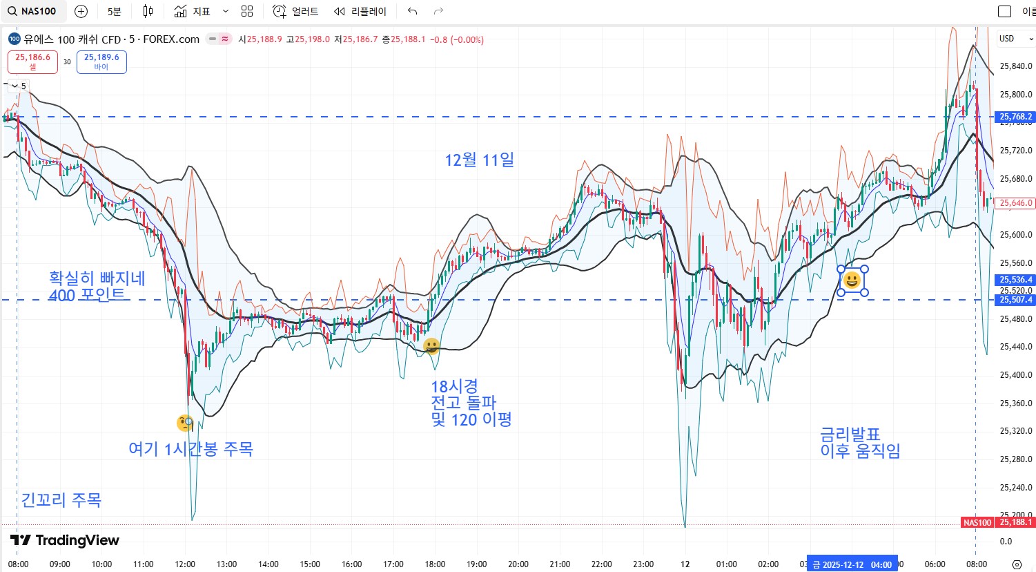 2025년 12월 08일 ~ 12월 12일 나스닥 CFD -> 낙폭과대 이후 다음주 움직임은??