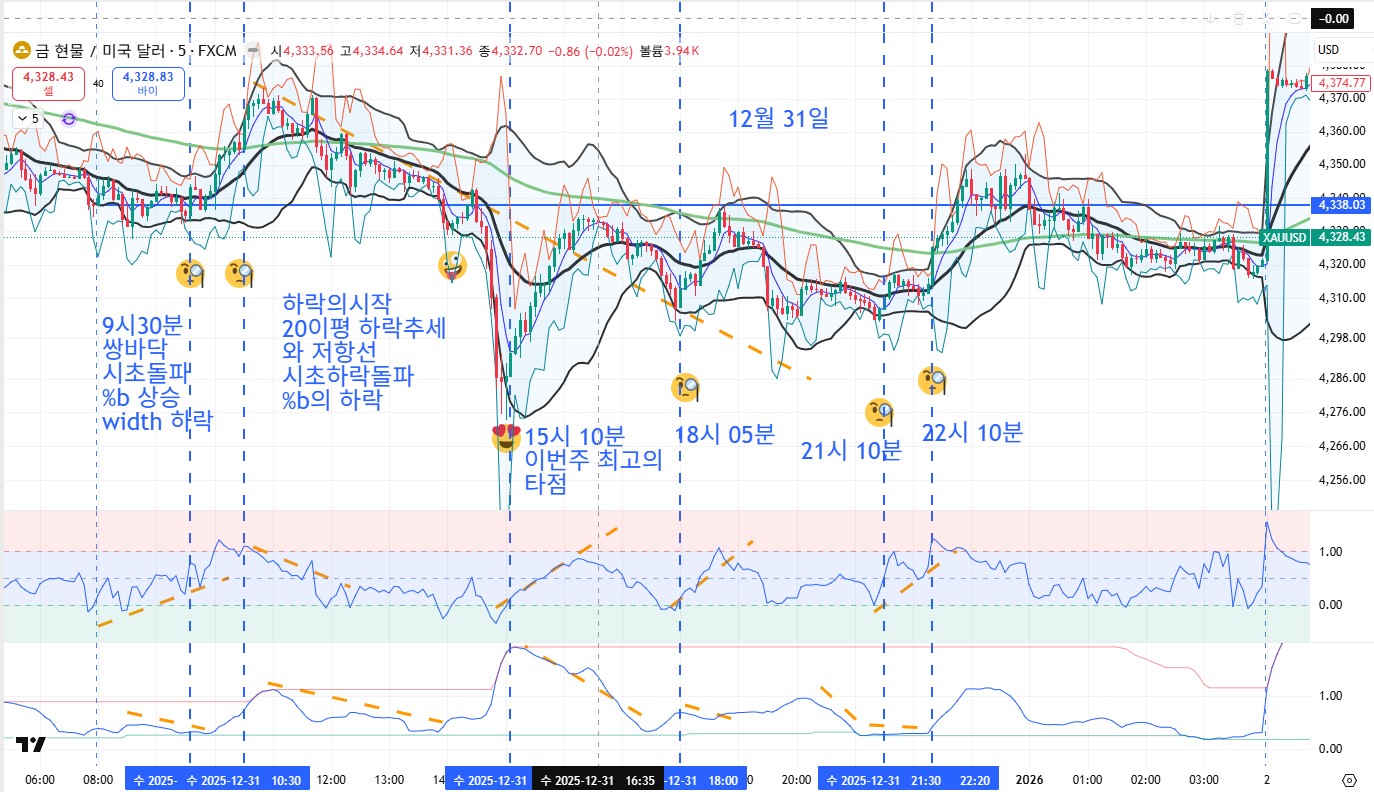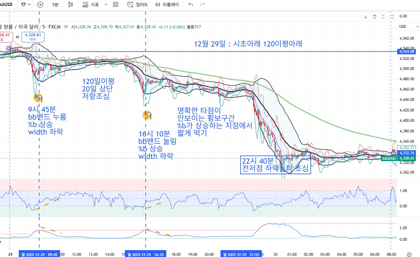 | 12월 26일 볼린져 밴드 / 시초 / 120이평 / 볼린져 보조지표 %b와 band width의 콜라보레이션 (0) | 2025.12.27 |